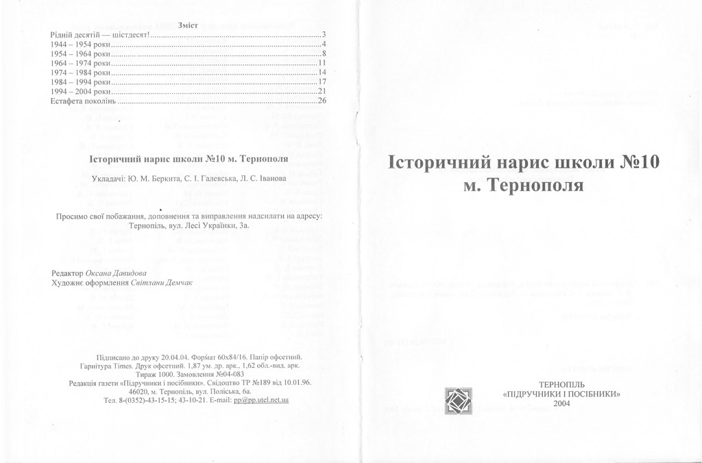 у м. Тернополі, редакція газети "Підручники і посібники" тираж 1000 примірників (ISBN 966-07-0117-9). У майбутньому до 70 річчя школи
